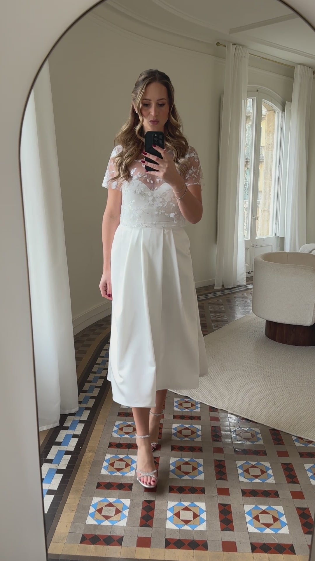 Dieses Spitzenoberteil ist die perfekte Wahl für Bräute, die einen Hauch von Luxus und Eleganz zu ihrem Hochzeitsoutfit hinzufügen möchten. Die florale Spitze verleiht dem Oberteil eine romantische Note, während der elegante U-Boot Ausschnitt für einen modernen und stilvollen Look sorgt.
