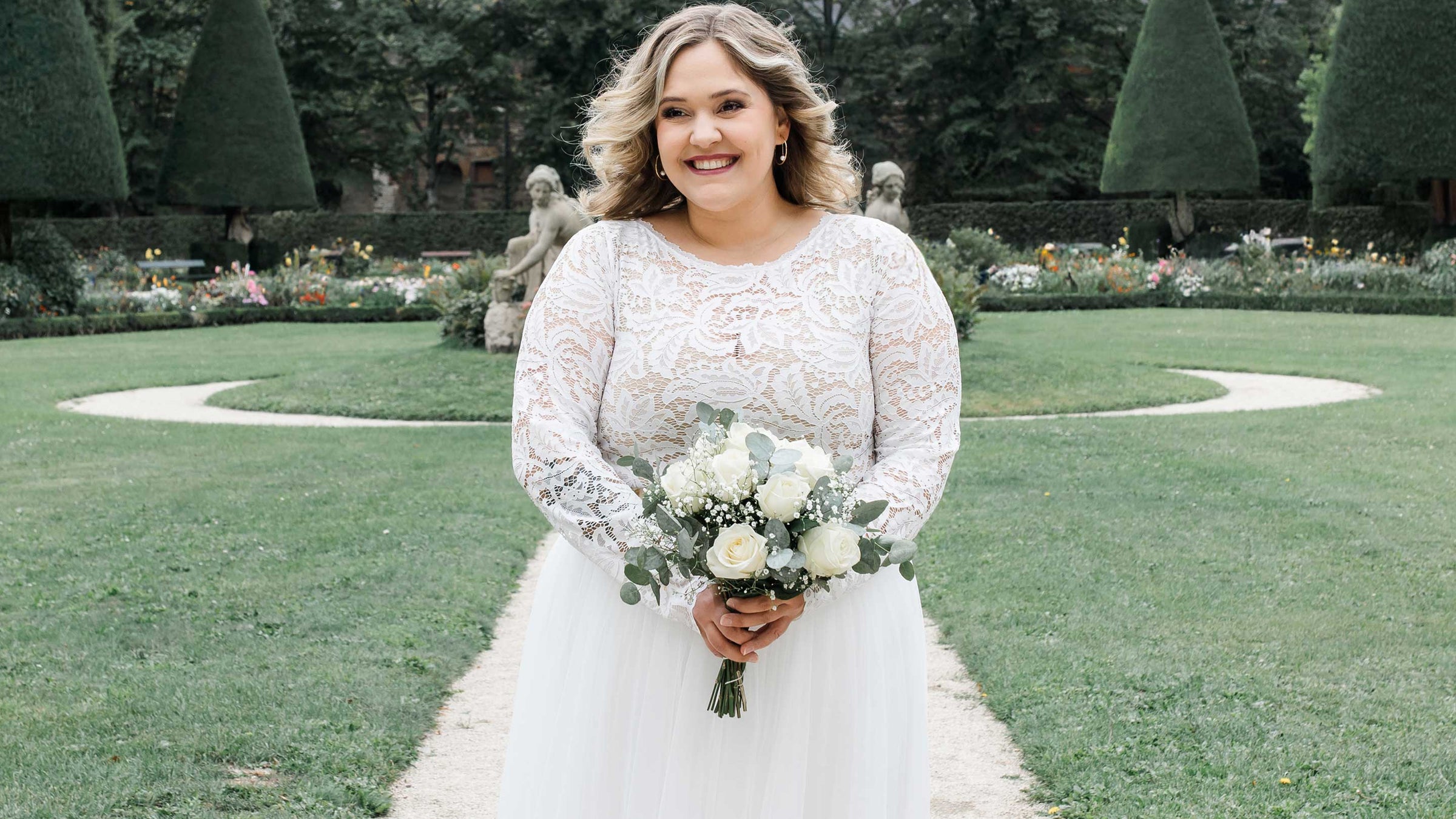 CONSTANT LOVE Braut Spitzenoberteil GORDES Langarm U-Boot Ausschnitt Cremeweiss