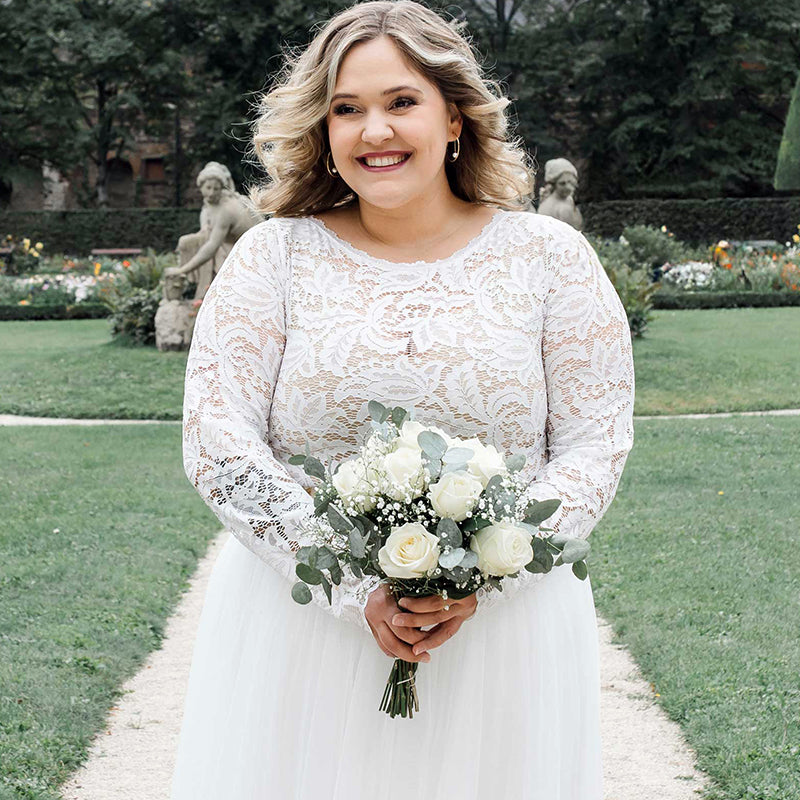 Entdecke das zauberhafte Spitzenoberteil mit Langarm und elegantem U-Boot Ausschnitt, das sich perfekt für Deinen modernen Brautlook eignet. Dieses elegante Oberteil ist Teil unserer exklusiven Mix & Match Kollektion und bietet Dir die Möglichkeit, Deinen individuellen Hochzeitsstil zu kreieren.